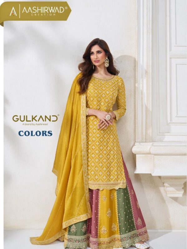 AASHIRWAD CREATIONS COLORS PREMIUM CHINNON SILK READYMADE SHARARA PLAZZO SETS